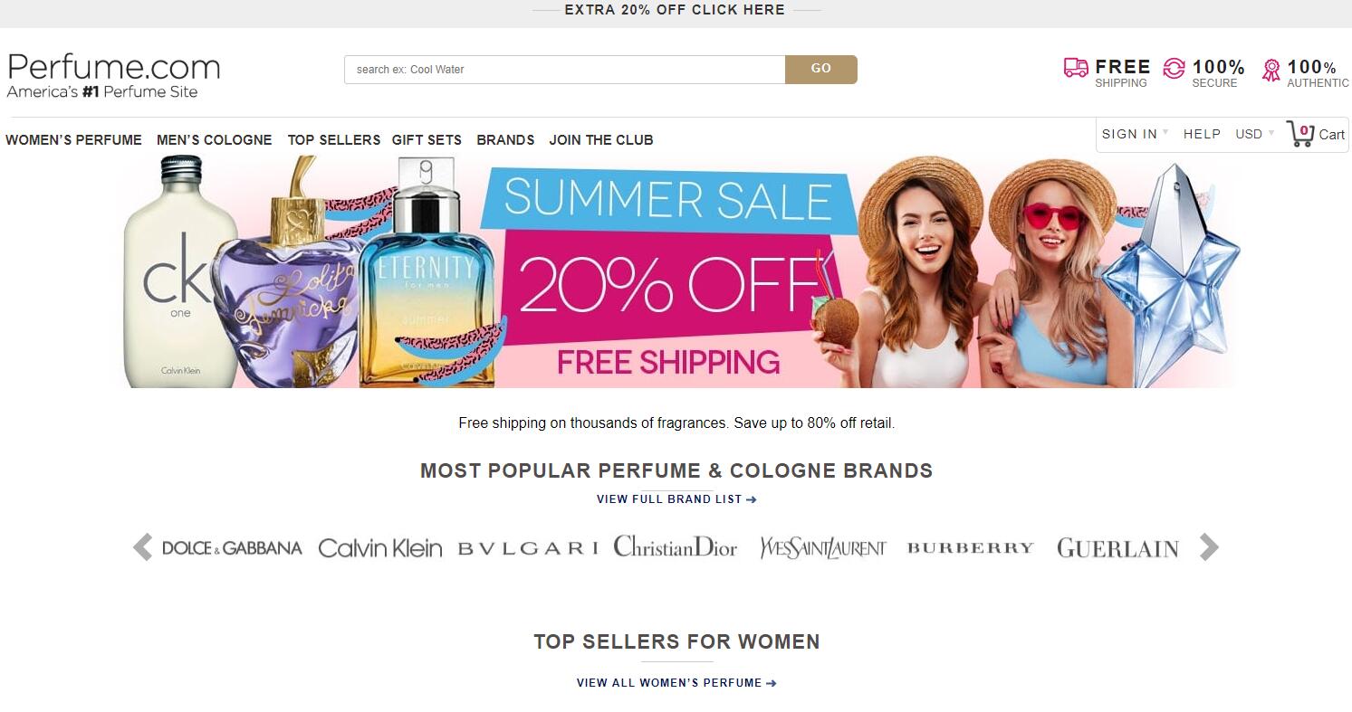 网站简介:Perfume.com 是美国著名的香水网站,自1995年成立以来,Perfume.com一直是美国排名第一的在线购买折扣香水网站。库存了7,000多种女士和男士香水,所有这些香水都可以在短短几天内送到家门口。 该网站广泛选择的香水和古龙水包括名人香水,礼品套装,畅销商品,还有难以找到的一些香水,特色样品,新品,甚至已停产的品牌。 通过在线购买下一瓶香水,可以每年365天节省高达70%的零售价格。