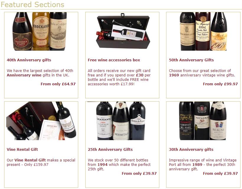 网站简介:Vintagewinegifts.co.uk是英国最大的酒类互联网零售商,拥有优质葡萄酒、葡萄酒、威士忌、干邑白兰地、阿马尼亚克酒和香槟,科用于周年纪念、生日、公司礼品和其他特殊场合。