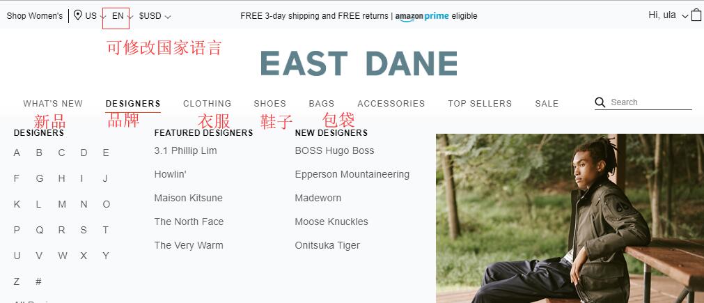 East Dane 是 亚马逊全资子公司 BOP LLC 的分公司。凭借全球性互联网人力资源和客户的关注,East Dane 是一个为格调男士专属打造的在线平台。涵盖了250个最受欢迎以及新兴的品牌,丰富每个人的衣柜。他们的产品种类多样,价位多元,满足各种生活需求。商品包括运动类、丹宁、T恤、外衣、鞋和各类周边产品都可以在这里买到,最新的潮牌比如Vince、A.P.C和Rag&Bone,让他们的选购指南帮您找到最适合您着装风格的产品。款式比较年轻化,既有大众追捧的热门品牌,也有部分小众的牌子。品类众多,鞋子、衣服、背包、公文包、帽子、腰带等等一应俱全,并且众多品牌在这个网站上直接折扣价出售。支持中文页面。它还为中国用户提供了中文400电话服务,很贴心。