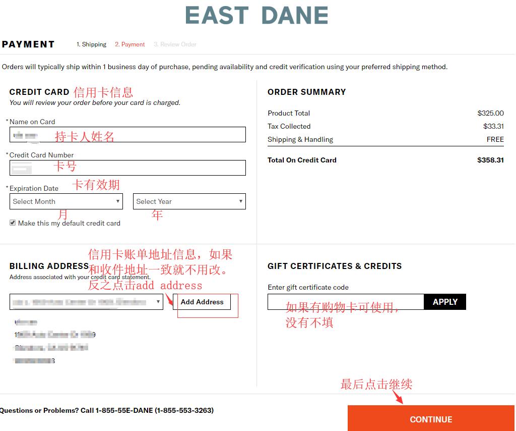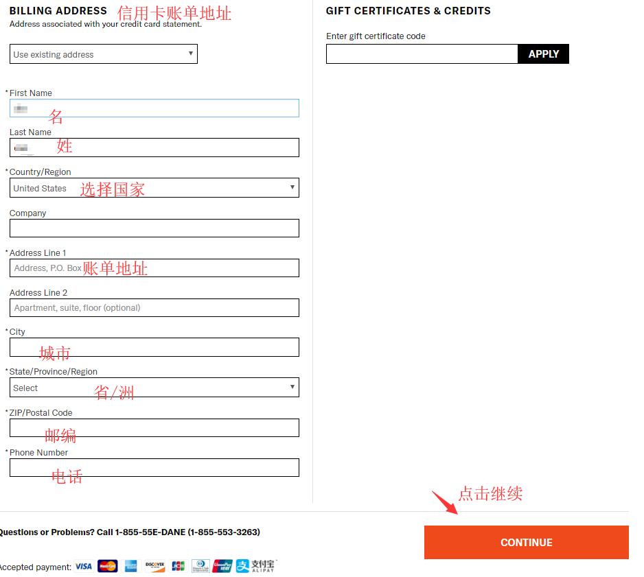 如果是转运,那么信用卡地址信息和收件地址不一致的情况,则需要点击先上面的Add Adress, 然后管理相应的信用卡账单地址信息(Billing Address), 最后点击继续