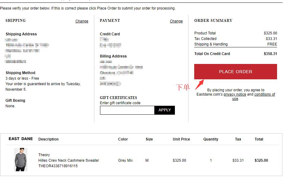 您就成功地完成了在East Dane网站上的海淘。当成功下单后,你的注册邮箱里会收到一封的East Dane订单确认邮件。您只需等待半个月左右,心爱的宝贝就会到达您手中啦,有木有很简单~~!