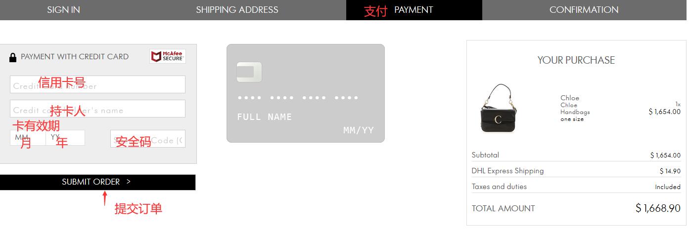 5) 输入信用卡信息,最后提交订单