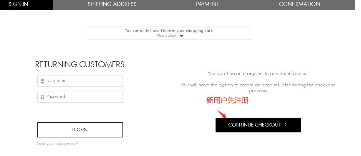 1)作为新用户, 你需要在结算前先填入个人的信息(收件地址、信用卡账单地址等)