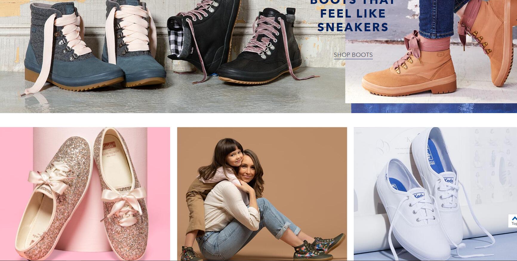 它的鞋底多为橡胶,其做工传统,精细,时尚,简约大方;款式众多,如休闲款、经典款、尖头款等;还有拖鞋,婴儿鞋。Keds深受美国女性喜爱,Taylor Swift和郑秀晶是Keds的代言人,在中国市场中也有很大一部分粉丝,Keds美国官网也成为了海淘的必选地。