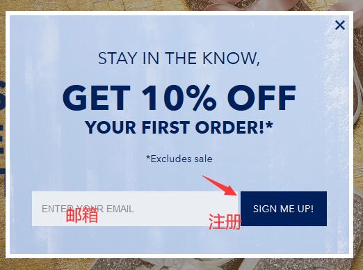 1)打开keds商家页面,在弹出的窗口中输入你的邮箱获得9折优惠码