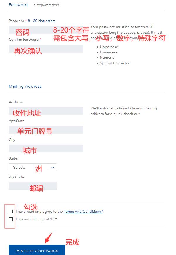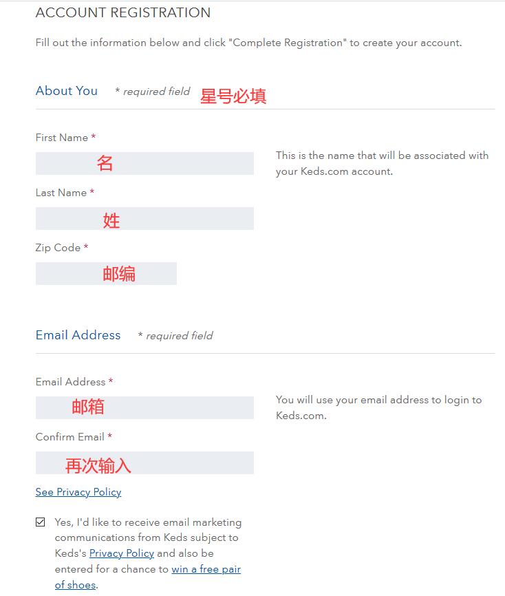 4)填写具体的个人注册信息(包括姓名,邮箱,密码,收件地址等)由于keds不支持直邮,所以需要填入转运公司提供给你的转运地址!