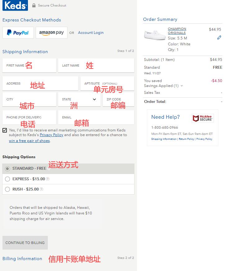 Keds美国官网海淘攻略(图解海淘下单流程)