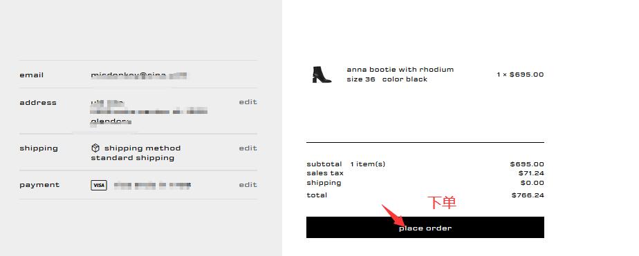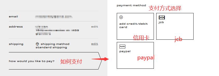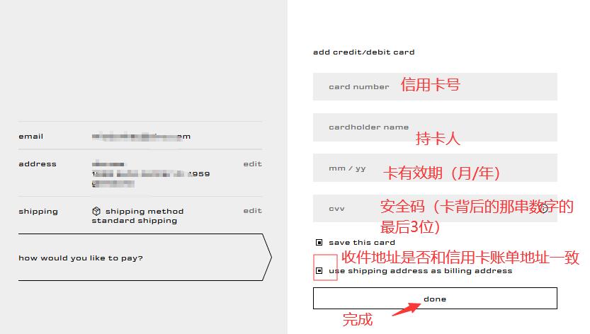 步骤3:结账( 选择快速、收件地址信息、信用卡账单地址信息填写、选择付款方式)