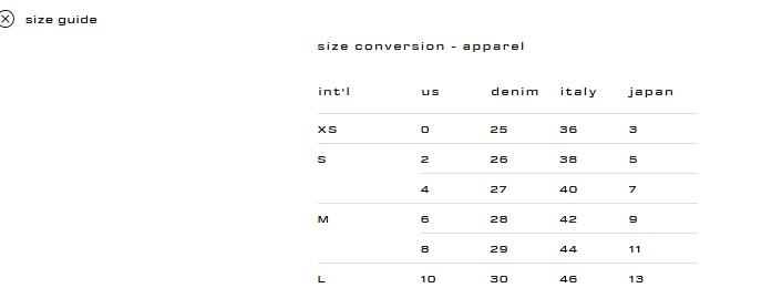 在具体产品页面,选择尺码的地方,点击进去就有相应类别的尺码对照表: