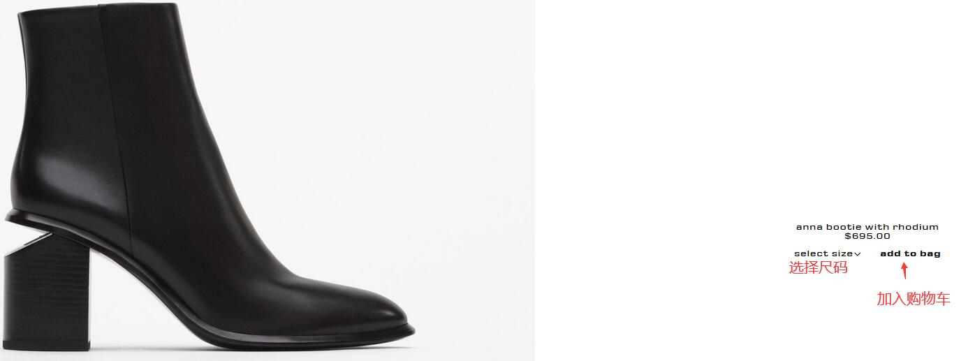 挑选您想海淘的产品,以这双女士短靴为例,加入购物车