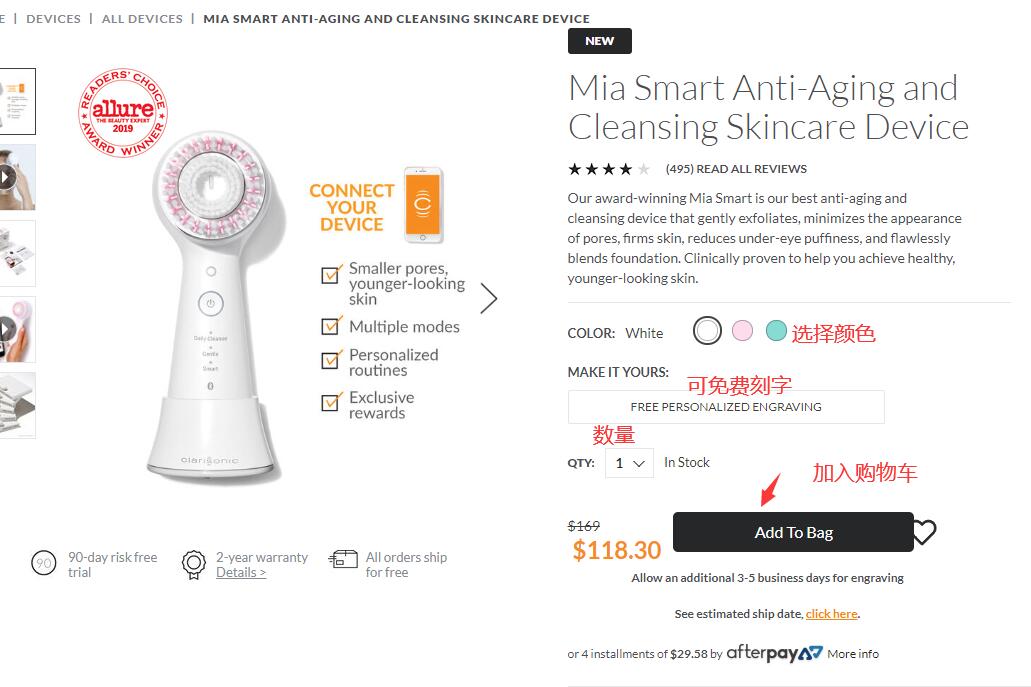 挑选您想海淘的产品,以Clarisonic Mia Smart为例,加入购物车