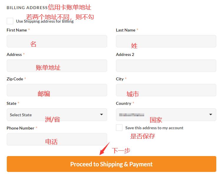 2. 若信用卡账单地址(Billing)和收件地址(Shipping)不一样,则不勾选,并填入账单地址信息详情