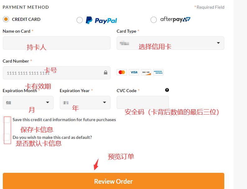 【支付方式】Paypal, Amex, Visa, Mastercard, Discovery, American Express, Afterpay