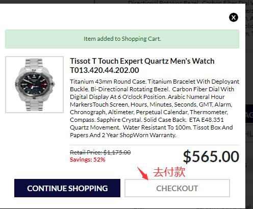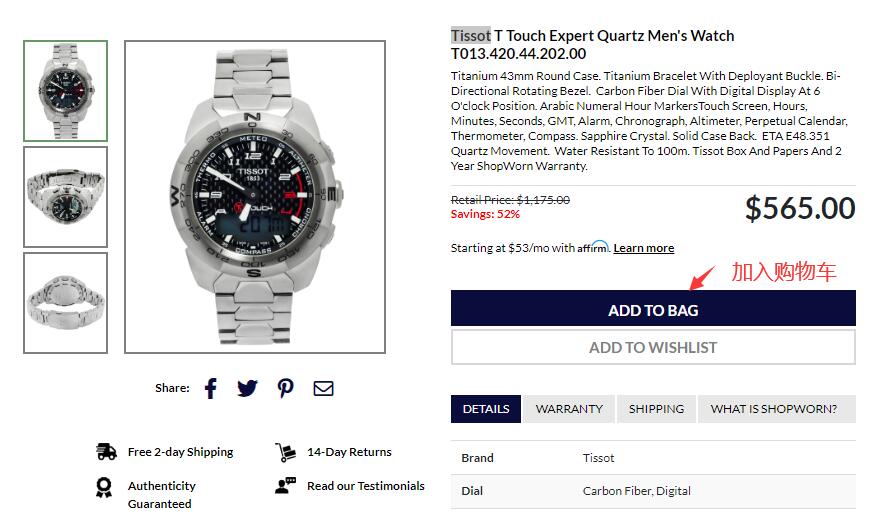 挑选您想海淘的产品,以这款Tissot手表为例,加入购物车