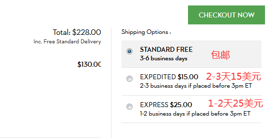 选择邮寄方式,可直接默认邮寄即可,一般默认了会满49美元享受包邮,当然如果想要更快就要收15美元或者25美元的运费,一般没有必要。衣服鞋子不着急穿可以缓一缓收货没关系,还省钱。