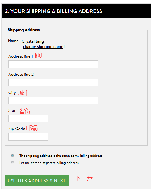 第五步:按照要求填写收货地址,因为是美国转运所以此处填写转运公司给的美国保税仓地址。
