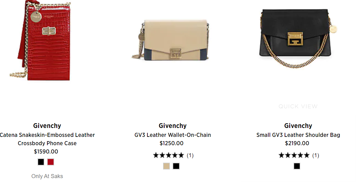 【网站简介】Saks Fifth Avenue是世界顶级的高档百货公司之一,在全球有超过50家的门店,旗舰店位于纽约第五大道,大牌男女装、国际名牌包包、女鞋,化妆品,首饰等一应俱全。 Saks Fifth Avenue涵盖了Burberry、Charles Nolan、Cynthia Steffe、HUGO BOSS、Juicy Couture、Chloé、Fendi、Dolce & Gabban、Kiehl's、Estée Lauder等一线品牌,可以说你想要的这里都能淘到,并且Saks Fifth Avenue提供直邮中国的服务哦,非常的方便。此外,Saks Fifth Avenue常年设有特卖专区最低4折(折扣商品样式和颜色都非常齐全 ),而且还有众多化妆品牌小样免费拿。Saks Fifth Avenue上部分新款纪梵希包包属于新品预售状态,最晚2024/05/02之前发货。还有些款式仅在Saks Fifth Avenue才有!