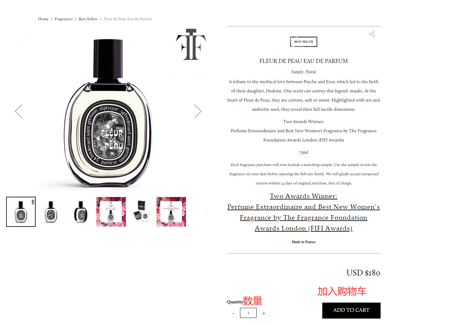 1)注册完后就可进入商家页面买买买了~~~把你想买的宝贝都加入购物车里,以Diptyque肌肤之花香水为例: