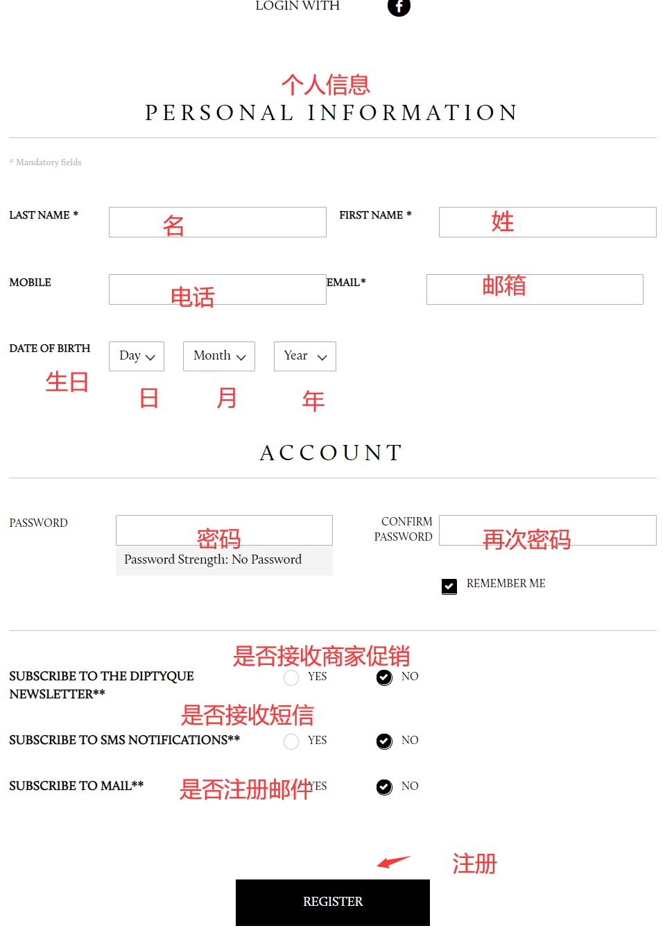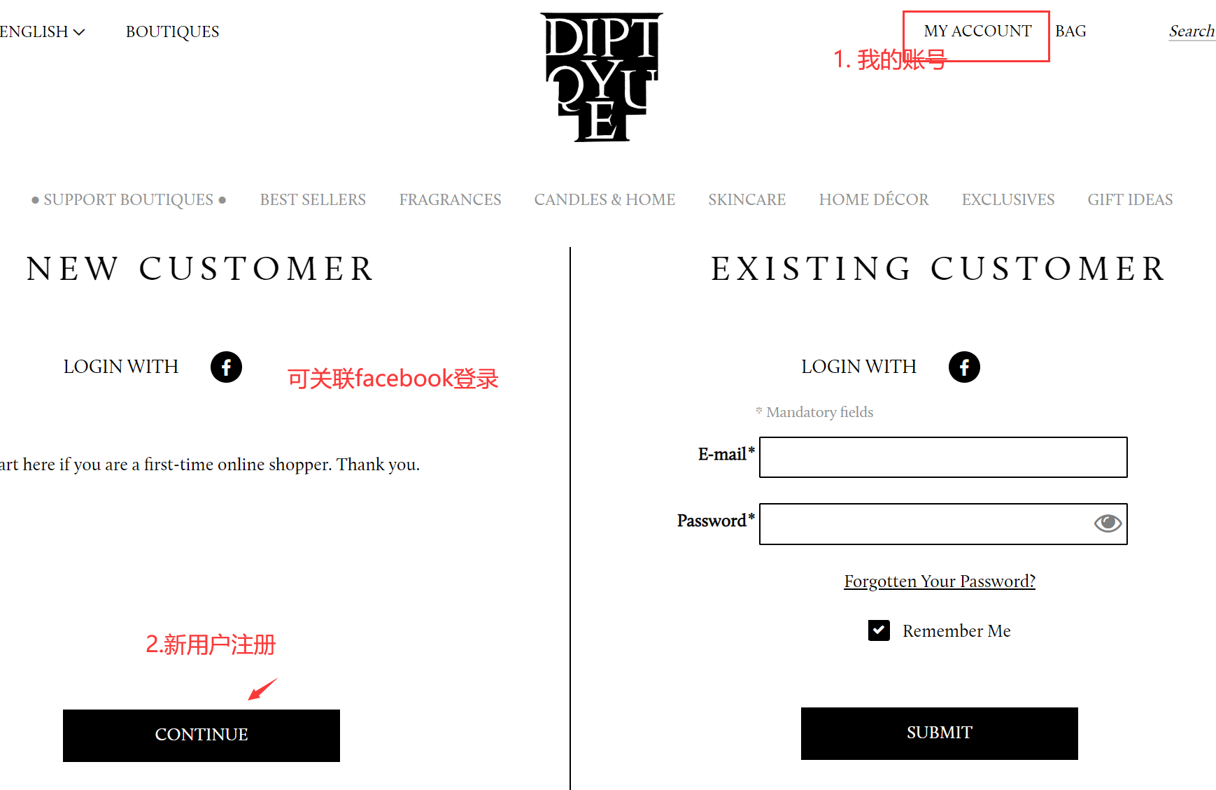 步骤1: 打开Diptyque官网并注册账号