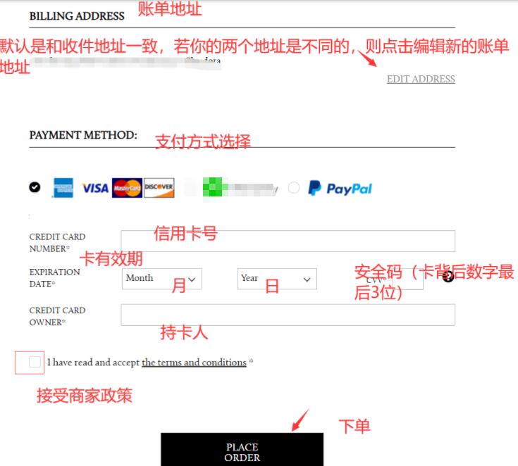 2)确认信用卡账单地址信息 & 选择支付方式(本文以信用卡支付为例)