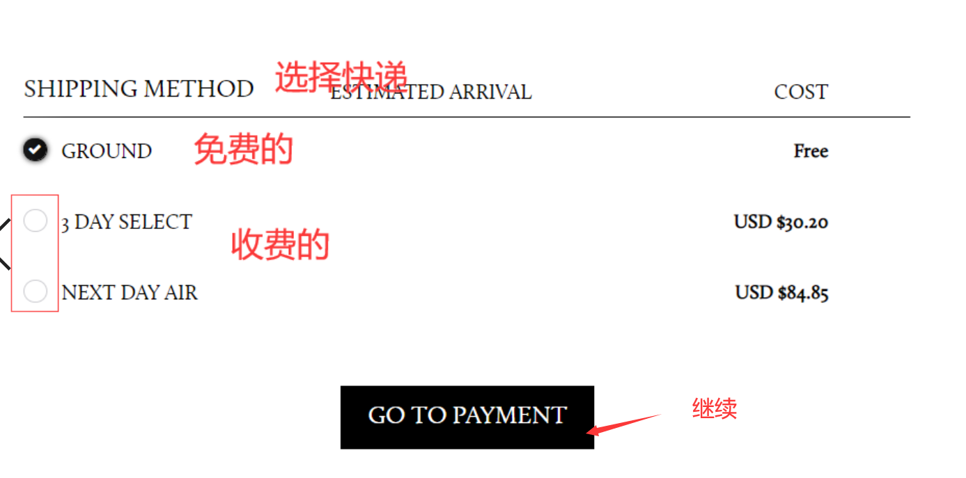 步骤3:结账( 收件地址信息、信用卡账单地址信息填写、选择快速、选择付款方式)