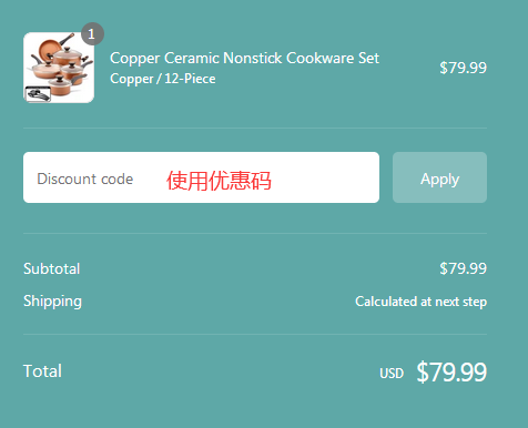 第三步:把所有需要购买的商品都加入购物车以后,就点击页面右上方的购物车符号。可以再查看一下购物车内东西是否齐全,数量款式是否正确等,然后有优惠码的话就填入优惠码点击使用!