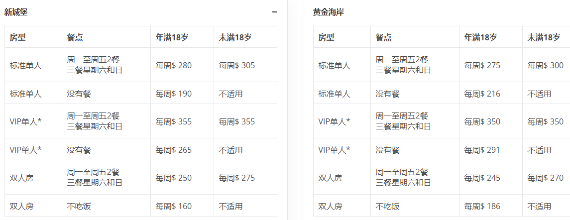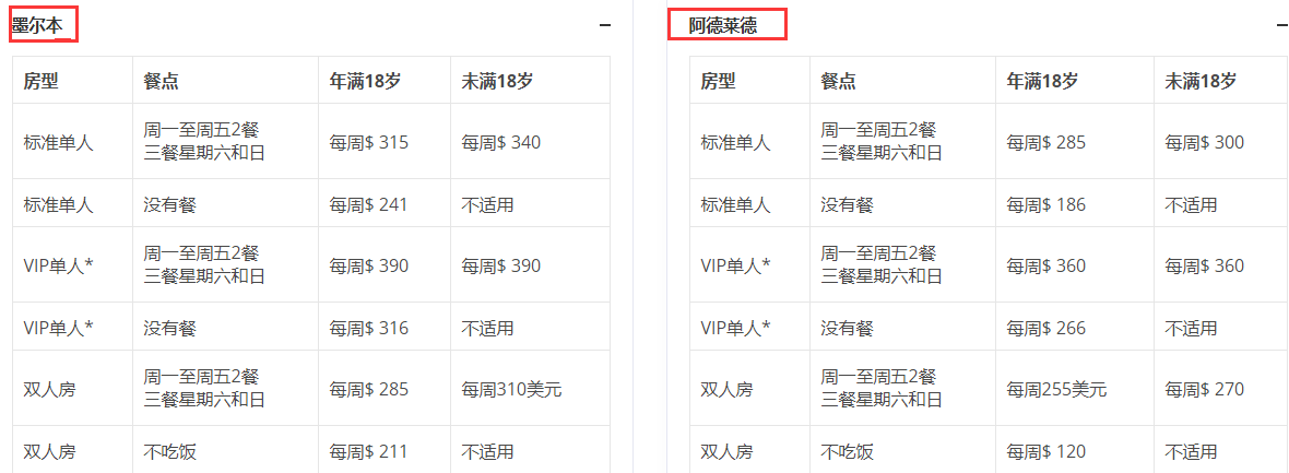 根据留学所在城市的不同,寄宿家庭条件的不同,寄宿家庭的花费也会有所不同,大约是从$200-$300,包含三餐和共用设施。以下是澳洲不同城市收费参考指南(仅做参考)