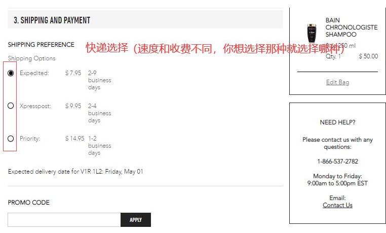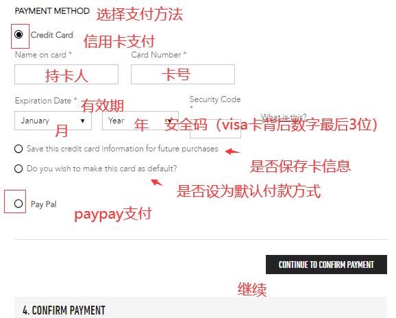 步骤3:结账( 选择快速、收件地址信息、信用卡账单地址信息填写、选择付款方式)