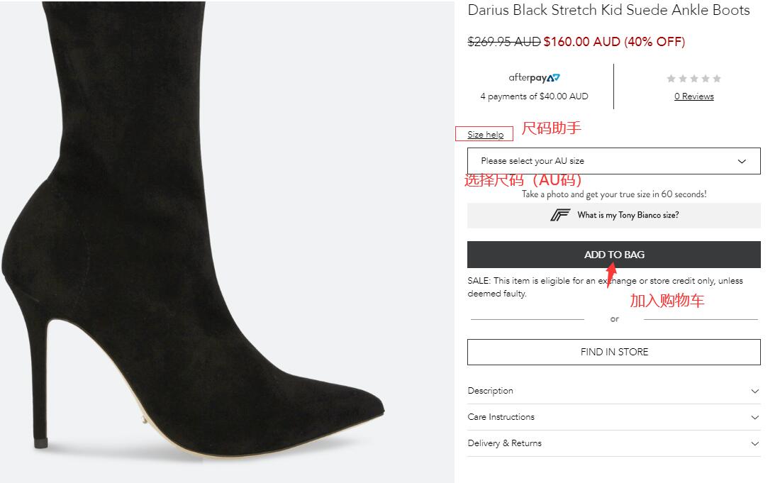 1) 注册完后就可进入商家页面买买买了~~~挑选你想海淘的产品,以这双短靴衣为例,加入购物车