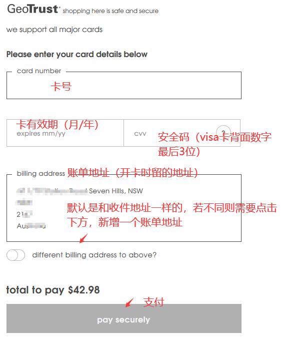 步骤3:结账( 选择快速、收件地址信息、信用卡账单地址信息填写、选择付款方式)