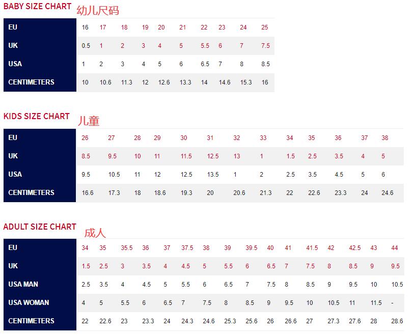 附:各个国家的尺码对照表