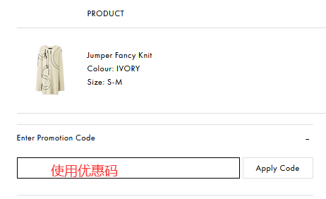 第三步:把所有需要购买的商品都加入购物车以后,就点击页面右上方的购物车符号。可以再查看一下购物车内东西是否齐全,数量款式是否正确等,然后有优惠码的话就填入优惠码点击使用!