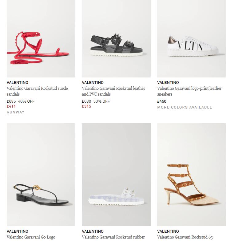 【网站简介】自从2000年于伦敦创建以来,NET-A-PORTER 颇特女士已然成为全球顶级时尚奢侈品电商。提供450家全球顶尖设计师杰作及逾190个精选美容品牌。NET-A-PORTER上有350个全球顶级时尚品牌,囊括服装、鞋履、包包、珠宝首饰、护肤美妆等大类,例如:Alexander McQueen,Emilio Pucci,Gucci,Christian Louboutin,Givenchy, Marc Jacobs, Jimmy Choo,Lanvin,Miu Miu,Valentino等,非常齐全。并且设有新锐设计师专栏,其中的品牌和单品都是NET-A-PORTER最核心的时尚买手团队精心挑选的。所购商品可于2-5天直送中国,退换货轻松便捷。NET-A-PORTER上Valentino华伦天奴鞋子低至5折,新人可享受9折优惠,非常便宜!