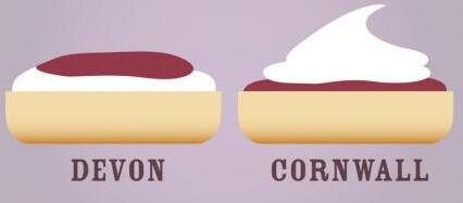 “没有司康的下午茶就像没有刀叉的晚宴”,Scone司康饼的吃法也是有讲究的,用手轻轻掰开成上下两半,并注意用盘子接住散落的碎屑,中间涂上果酱和凝脂奶油。在英格兰西南部的德文郡和康沃尔郡形成了两大Cream tea派系,按照Cornish tradition,一般是先涂果酱(jam)、再涂奶油(Clotted cream);而按照Devon tradition, 则是先奶油再果酱。吃完一口、再涂下一口。所以酱的顺序其实无需关心,只要喜欢,怎样抹都行。