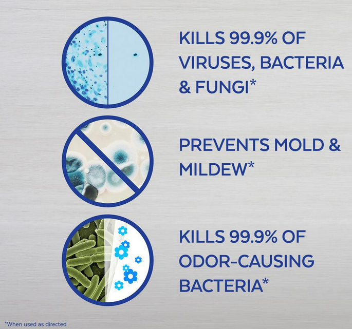 Lysol的产品均可以杀死99.9%的病毒和细菌在坚硬和柔软的表面,如地板、门把手、水槽和厕所。对于衣物或床上用品等柔软的表面,可以选择Lysol品牌比较温和的产品,如湿巾和喷雾等。
