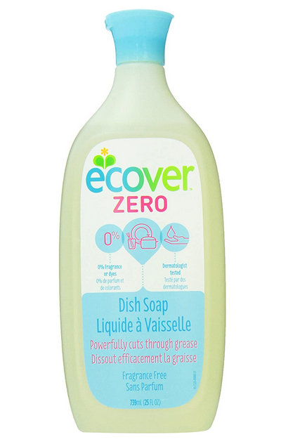Ecover洗洁精经皮肤科专家测试及低过敏。0%香料或染料,高效去除油脂,挤一下就够将满水槽的脏盘碗碟清洁干净。但是不能在自动洗碗机中使用。