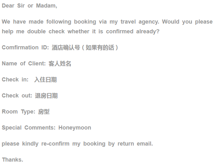 第六步: 在收到你的预订信息后,酒店会在一小时内予以确认,有些会以邮件方式回复酒店,有问题也可以咨询酒店。