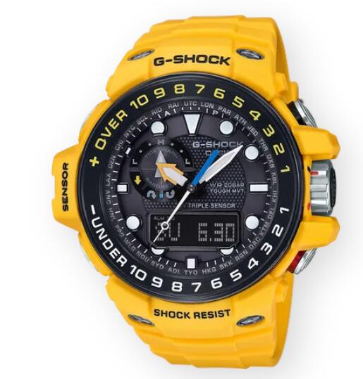 G-SHOCK的Master of G系列以海陆空为概念,追求极致功能,它可以在比普通G-SHOCK更为恶劣的环境中使用。有些型号的附加功能可防泥,深海甚至高空气压。比如最新的款式- Gulfmaster是为从事严酷海洋作业的男士所设计,坚韧与信息认知功能的高次元融合,首次搭载高精度测量水深、方位、气压/温度、高度的四重感应器。