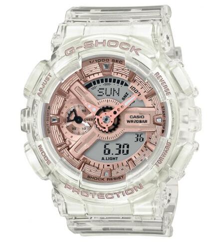 这款来自卡西欧(Casio)的透明G-Shock手表是为拥有积极生活方式的女性设计的。 钟表柔和的玫瑰金色调为您的风格增添了些许色彩,而G-Shock坚固的构造使其可以承受各种冒险,无论是攀岩,远足甚至潜水,防水深度达200米! 手表不仅具有防震和防水性能,还具有秒表和倒计时功能,以及速度指示器和世界时间选项。