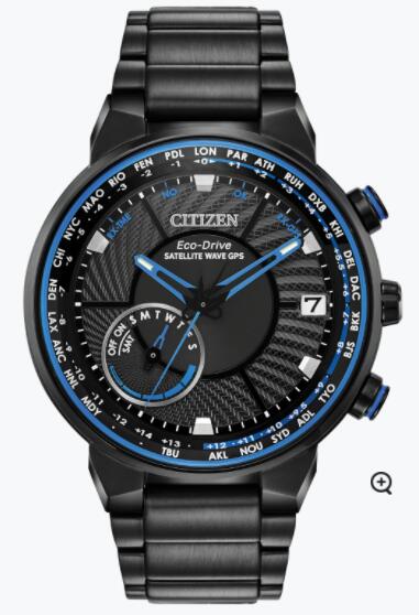 设计大胆、明亮的一款, 科技感和建筑设计感增强。 新型Citizen西铁城卫星GPS Freedom凭借GPS导航带来的全球最快的计时信号接收速度,成为了该领域的领导者。 光滑的黑色离子电镀不锈钢表壳和表链,黑色表盘和亮丽的蓝色配音采用卫星GPS计时技术,可在40个时区进行全球接收和时间调整。 由Eco-Drive技术 – 任何灯光提供动力。