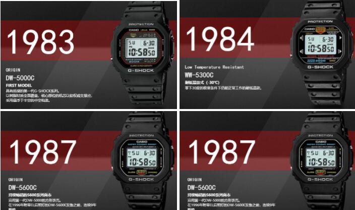 1983年,被称为“G-Shock之父”的伊部菊雄研发了一款怎么摔都不会坏的表。经历多番曲折,有了“小方块”的经典设计:中空表壳结构、树脂外壳、方形设计,第一款G-Shock:DW-5000C就此诞生。之所以叫G-Shock,因为它能承受 “Gravity” 重力的强烈冲击。“小方块”就是G-Shock系列的鼻祖。从发明至今,G-Shock的功能、外观一直在不断进步。
