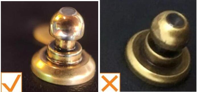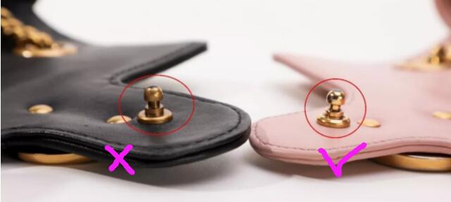 3)正品锁扣顶部呈凸起状,会比金属高出一点,但又不会高很多。仿品顶部通常会内陷或者突出很多。