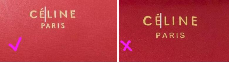 2)正品的Logo烫印清晰,笔画较细,Phoebe Philo时期的手袋,包括笑脸包、鲶鱼包、秋千包、Box、Clasp等款式,老款手袋正面上方烫印的logo都是“Céline”,新出的改成了“Celine”。也就是说目前logo不管是“Céline” 还是“Celine”,都不能成为判断Celine手袋真假的唯一标准。