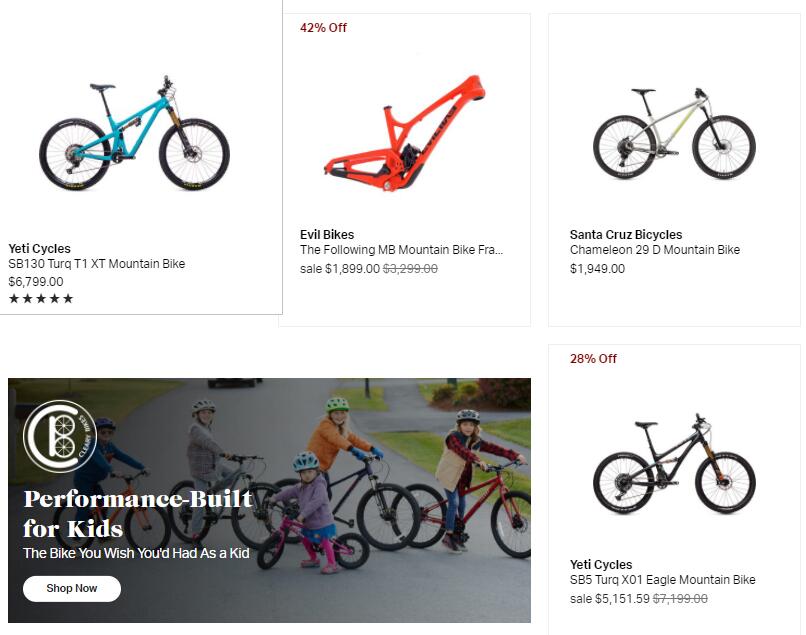 MooseJaw专为那些希望在崎岖的地形中寻找高性能自行车的高级骑行者提供选择,几乎所有型号的价格都在1000美元以上。Moosejaw对于全价商品的返现比例巨大,是一个重点海淘目的地。所以也是任何商品至少都是无脑9折起,而且不需要会员费,只需注册便可。