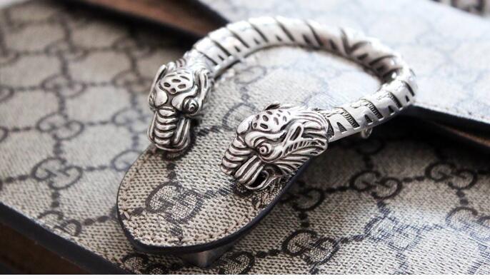 Gucci Dionysus酒神包是Alessandro Michele上任后亲自设计的第一款手袋,它诞生于2015的秋冬系列,酒神系列标志性特征即包包正中央的那枚精致霸气的双虎头搭扣,这个独特细节的设计灵感源于古希腊罗马神话中的Dionysus酒神的一个故事:传说他在流浪途中,变作老虎,带着一位年轻的仙女穿越底格里斯河,并与此女相爱。这枚马蹄拱形的双虎头搭扣象征了当代女性的多样生活得以圆融并行、均衡过渡,反映了现代女性白昼和夜晚之间的无缝切换,如同酒神般多情、慷慨的爽朗个性,追求着精神上的贵族生活。