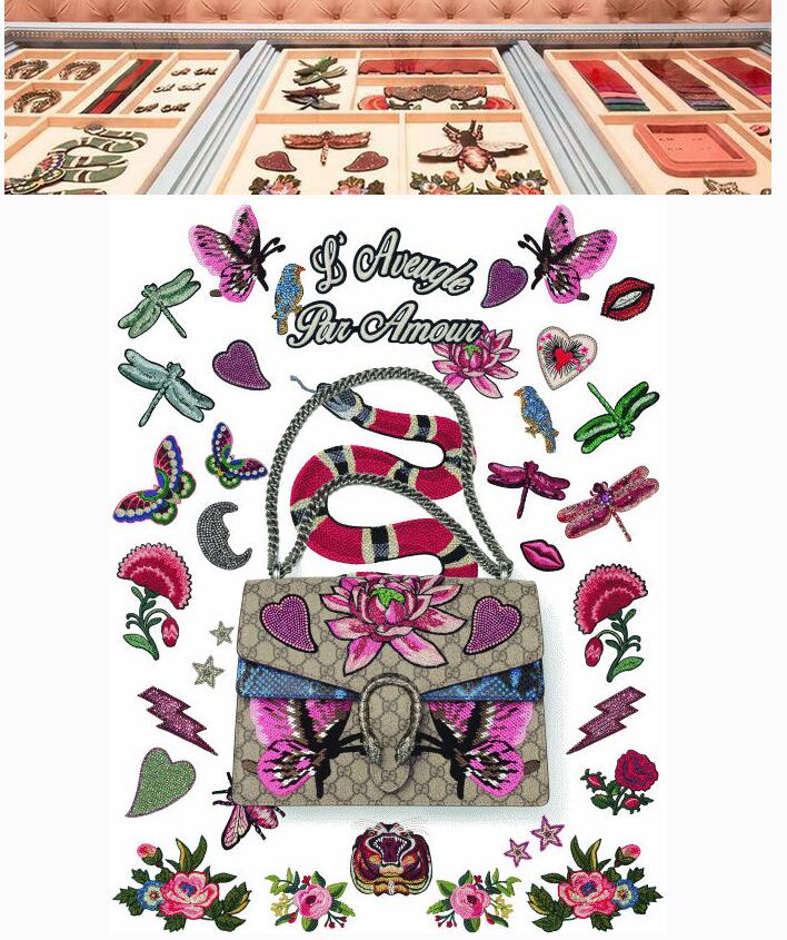 刺绣亮片,璀璨无比,玩嗨了的设计师简直停不下欢腾的脚步,每一季都有趣味十足又呼应主题的刺绣款酒神包出现,蕾丝、亮片、珠珠、羽毛等各种元素都手到擒来。