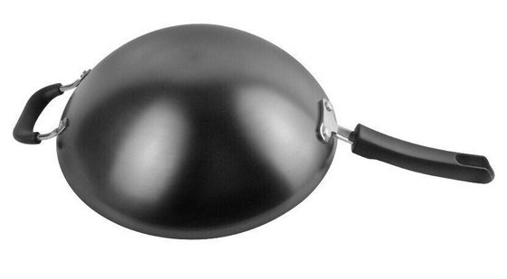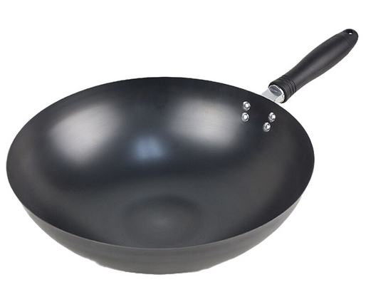 圆底铁锅,相同的锅口直径,圆底铁锅比普通铁锅深,食物居中在底部,翻炒不飞菜。