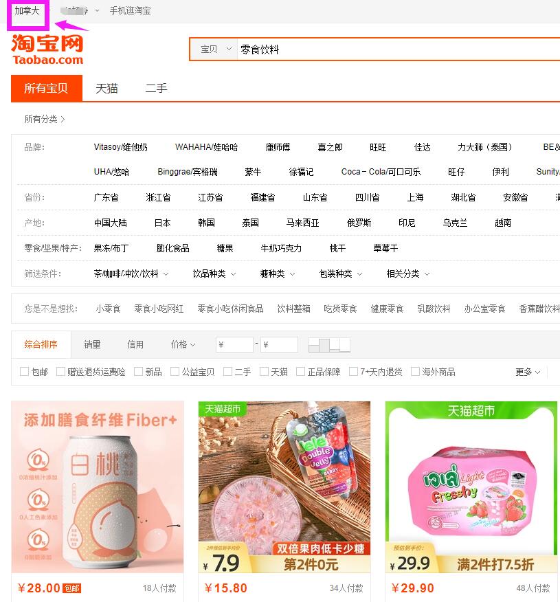 要用淘宝集运,首先地区设置要选择海外:美国,加拿大,澳大利亚,马来西亚等,你在加拿大就选择加拿大