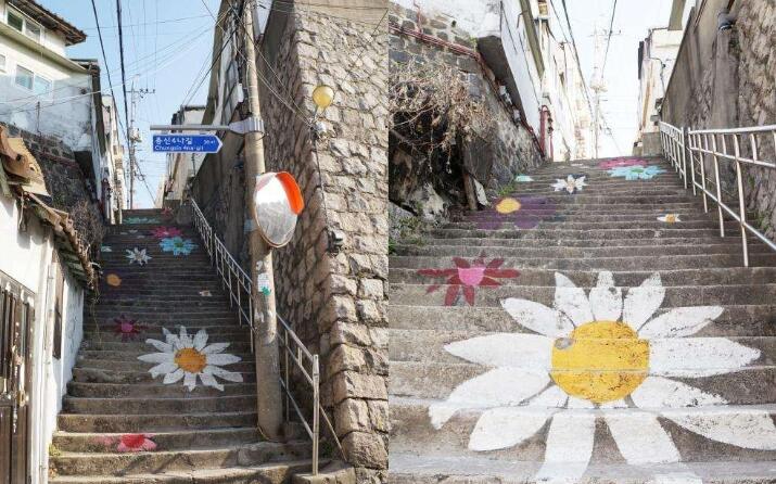 梨花壁画村:一个相当艺术的小村落,一条特色街道,曾多次出现在韩剧当中而被人所熟知。梨花村上上下下的台阶上、旁边的墙壁上,被艺术家们画上了各种图案,文艺范十足,拍照打卡圣地。