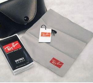 通常眼镜盒里还配有一张擦镜布,正品雷朋墨镜的眼镜布是银灰色,还有印有红色的RAY.BAN 的标志,尺寸比一般眼镜布要短小一些。正品眼镜布看起来材质较好,logo清晰。而仿品的眼镜布质地摸起来比较粗糙,对比起来logo的字样也比正品的大一些。